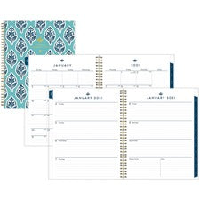Blue Sky Sullana Design Weekly/Monthly Planner - Julian Dates - Monthly, Weekly - 1 Year - January 2021 till December 2021 - 1 Week, 1 Month Double Page Layout - 8 1/2" x 11" Sheet Size - Twin Wire - Teal - Appointment Schedule, Bleed Resistant Paper, Notes Area, Storage Pocket, Tabbed - 1 Each