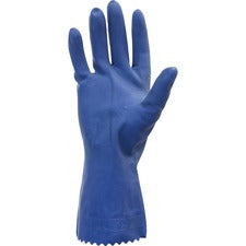 0Coated knit gloves from The Safety Zone come in a variety of materials and are the most versatile form fitting industrial work gloves available. Palms and fingers are protected by a dipped coating made out of latex, nitrile or polyurethane. They are long lasting, have excellent dexterity and are available in many sizes for the most comfortable fit. Safety Zone Blue Unlined Latex Gloves - Chemical Protection - X-Large Size - Latex - Blue - Pinked Cuff, Recessed Diamond Grip, Flock-lined - For Dishwashing, Cleaning, Meat Processing - 14 mil Thickness