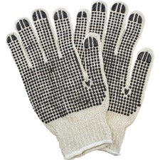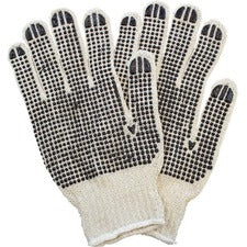 Safety Zone Cotton Polyester String Knit with 2 Sided PVC Dotted Grip - Polyvinyl Chloride (PVC) Coating - Small Size - Male - Cotton, Polyester - Black, Natural - Knitted, Grip Dots - For Food, Janitorial Use, Cosmetics, Painting, Pet Care